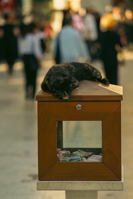Artistic representations of Pandora’s Box have captivated audiences for centuries, offering visual interpretations of the myth․ Paintings often depict Pandora as a curious figure, surrounded by symbolic elements like the box and escaping evils․ Sculptures, too, have immortalized her story, focusing on her emotional expressions․ Digital art and modern installations reinterpret the myth, blending traditional themes with contemporary styles․ These artworks not only preserve the story but also invite reflection on its timeless themes, making Pandora’s Box a enduring subject in visual art․