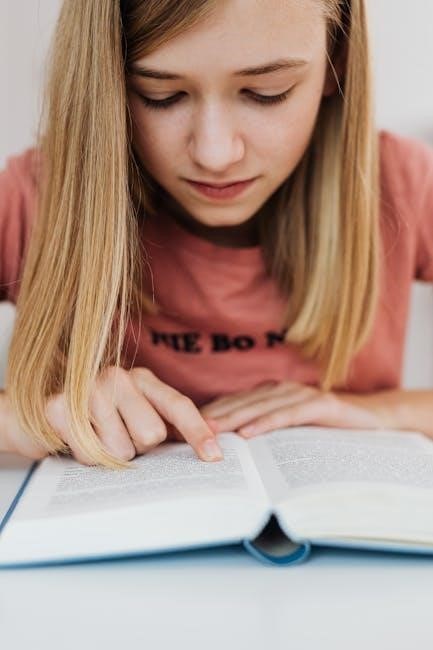 Questions typically ask students to describe a character’s traits at the beginning, middle, and end of a text, noting how experiences shape their personality. PDFs may include prompts requiring students to cite specific evidence from the text to support their interpretations.